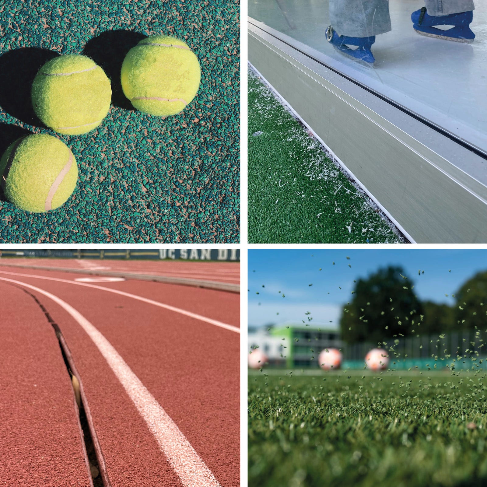 Was haben Tennisplätze, Tartanbahnen, Eisbahnen, Kunstrasenplätze und Reitplätze gemeinsam? Sie alle emittieren große Mengen Mikroplastik in die Natur.