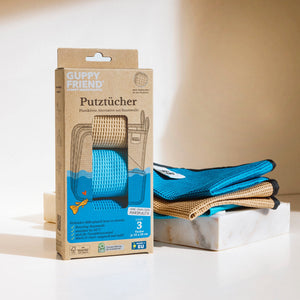 Du vermeidest mit den GUPPYFRIEND Putztüchern Mikroplastik, bevor es entsteht! Struktur und Konstruktion sind so gewählt, dass du getrost dein Mikrofasertuch fachgerecht entsorgen kannst und Mikroplastik Verschmutzung ohne Mühe stoppen kannst.