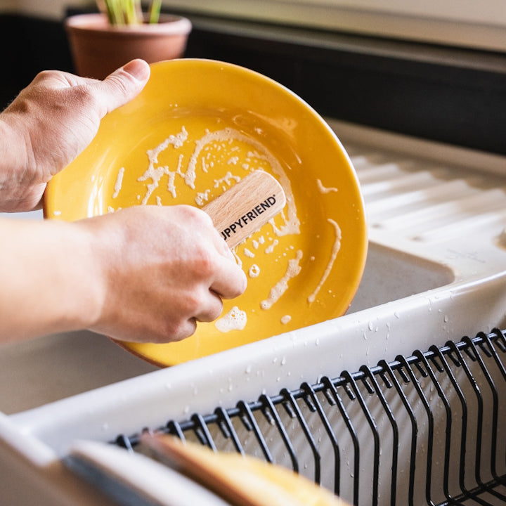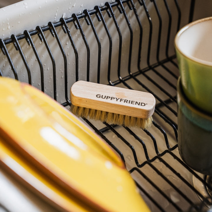 Die Filtergewebe – zum Beispiel von deinem GUPPYFRIEND Waschbecken Filter – kannst du übrigens prima mit der GUPPYFRIEND Reinigungsbürste säubern.