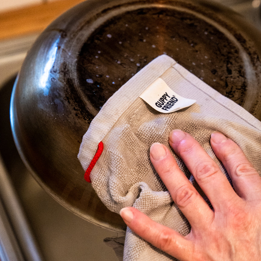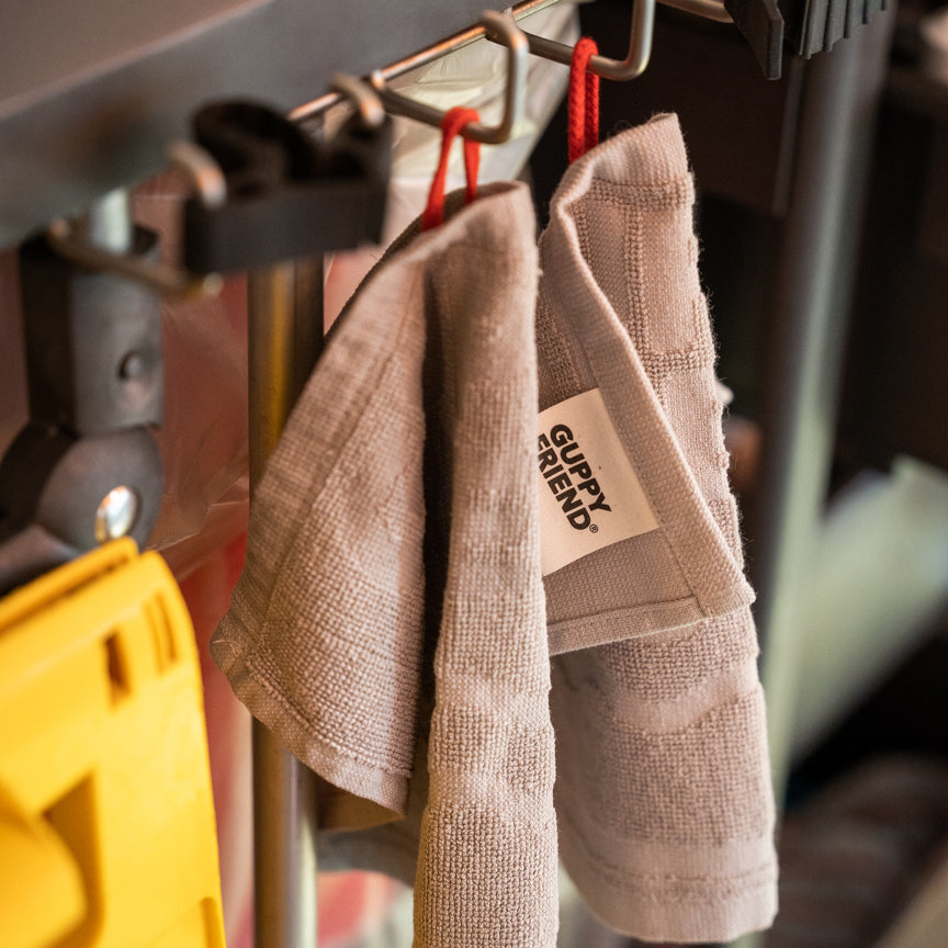 Du vermeidest mit den GUPPYFRIEND Spültüchern Mikroplastik, bevor es entsteht! Die Materialkombination aus Bio-Baumwolle und Leinen erhöht die Stabilität und Abriebfestigkeit und führt somit zu verbesserten Putzeigenschaften. Zwar ist das härtere und sprödere Leinen schwieriger zu verarbeiten, aber es beugt Bakterienbefall und Geruchsbildung vor. Das GUPPYFRIEND Spültuch trocknet so auch noch schneller. Alles in allem, die beste Kombination für sauberes Geschirr und gegen Mikroplastik.